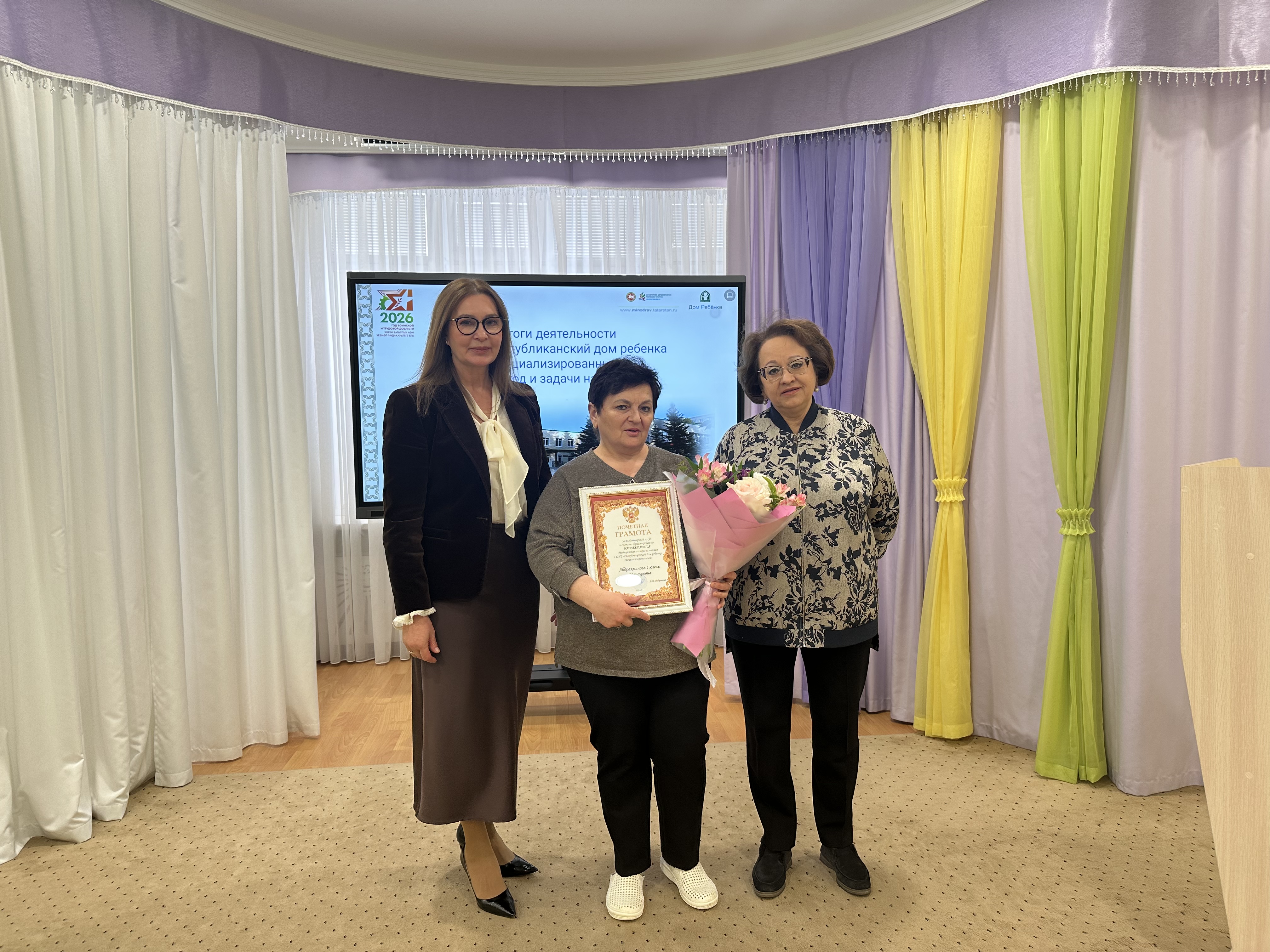 Итоги года и планы на будущее: Медсовет в Республиканском доме ребёнка. Сегодня в ГКУЗ «Республиканский дом ребёнка специализированный» состоялся итоговый медицинский совет. Главной повесткой стал анализ работы учреждения за 2025 год и определение ключевых задач на 2026 год. С основным докладом выступила директор дома ребёнка Надршина Алсу Наилевна, представившая подробный отчет о достижениях и деятельности коллектива. С содокладами по профильным направлениям выступили: Зарипова Раушания Равильевна, заместитель директора по медицинской части; Овсянникова Наталья Валерьевна, врач-реабилитолог. Участники заседания обсудили результаты лечебной и реабилитационной работы, а также наметили векторы развития для повышения качества помощи воспитанникам в новом году. Итоги заседания подвела заместитель министра здравоохранения Яркаева Фарида Фатыховна, поблагодарив коллектив за плодотворную работу. Доброй традицией в завершение заседания стало вручение почетных грамот и благодарностей.